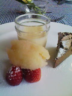 ランチ1260円で春キャベツとアンチョビーのパスタ、若鳥のソテー、デザート(いちご+りんごシャーベット、とろけるプリン、ケーキ)。この他、美味しいパンとコーヒーも付いていました♪